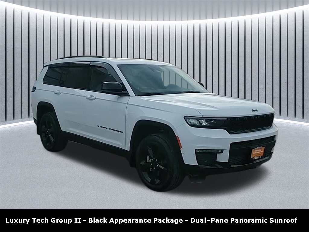 CARFAX One-Owner. Clean CARFAX. Odometer is 8003 miles below market average! ** Clean Carfax 1-Owner Accident Free History, ** Apple CarPlay/Android Auto, ** Adaptive Cruise Control, ** Blind Spot Monitor, ** Cross Traffic Alert, ** Alloy Wheels / Premium Wheels, ** Heated Seats, ** Cooled Seats, ** Bluetooth, Hands Free, ** Brake Assist, ** Camera Backup, ** Chrome Wheels / Premium Wheels / Custome Whwels, ** Cruise Control, ** Heated Steering Wheel, ** Keyless Entry, ** Lane Departure Warning, ** Leather Seats, ** LED Headlights, ** Navigation System, ** Power Panoramic (Pano) Sunroof / Moonroof, ** Premium Sound System / Premium Audio, ** Roof Rack, ** Stability Control, ** Steering Wheel Controls, ** Sunroof/Moonroof, ** Third Row Seating / 3rd Row Seating, ** USB Port, ** Clean Carfax Accident Free History, ** Power Drivers Seat, ** Power Passenger Seat, 4WD, 4X4, Black Appearance Package, 20â"inch x 8.5â"Inch Glossâ"Black Painted Alum Wheels, Capri Leatherette Axis II Seats, Ventilated Front Seats, Uconnect® 5 Nav with 10.1â"Inch Touch Screen Display, 2nd Row Buckets, Engine: 3.6-liter Pentastar V6, producing 293 hp and 260 lb-ft of torque stellantis-wn2025-assetlib.s3.amazonaws.com +1 Drivetrain & Transmission: Full-time 4-wheel drive (4WD) with an 8-speed automatic transmission. Edmunds +1 Fuel Economy: EPA rated around 18 mpg city / 25 mpg highway / 21 mpg combined. Stellantis Fleet +1 Towing Capacity: Up to 6,200 lbs â" solid for towing trailers, boats, or campers. stellantis-wn2025-assetlib.s3.amazonaws.com +1 Cargo & Seating: Itâs a three-row SUV (the âLâ package), with maximum seating capacity of 7 and up to ~84.6 cu ft cargo space when rear seats folded. Kbb.com +1, Grand Cherokee L Limited Dualâ"Pane Panoramic Sunroof, 4D Sport Utility, 3.6L V6 24V VVT, 8-Speed Automatic, 4WD, Bright White Clearcoat, Global Black Artificial Leather, 2nd Row Manual Window Shades, Auto-Dimming Exterior Driver Mirror, Black Appearance Package, Capri Leatherette with Axis II Seats, Gloss Black Exterior Accents, Integrated Off-Road Camera, Intersection Collision Assist System, Luxury Tech Group II, Memory Steering Column, Navigation System, ParkSense Front/Rear Park Assist with Stop, Passive Entry - Front/Rear Doors, Liftgate, Power Tilt/Telescope Steering Column, Quick Order Package 22E, Rain Sensitive Windshield Wipers, Rear Back Up Camera Washer, Rearview Autodim Digital Display Mirror, Surround View Camera System, Ventilated Front Seats, Wheels: 20" x 8.5" Gloss Black Painted Aluminum, Wireless Charging Pad.
