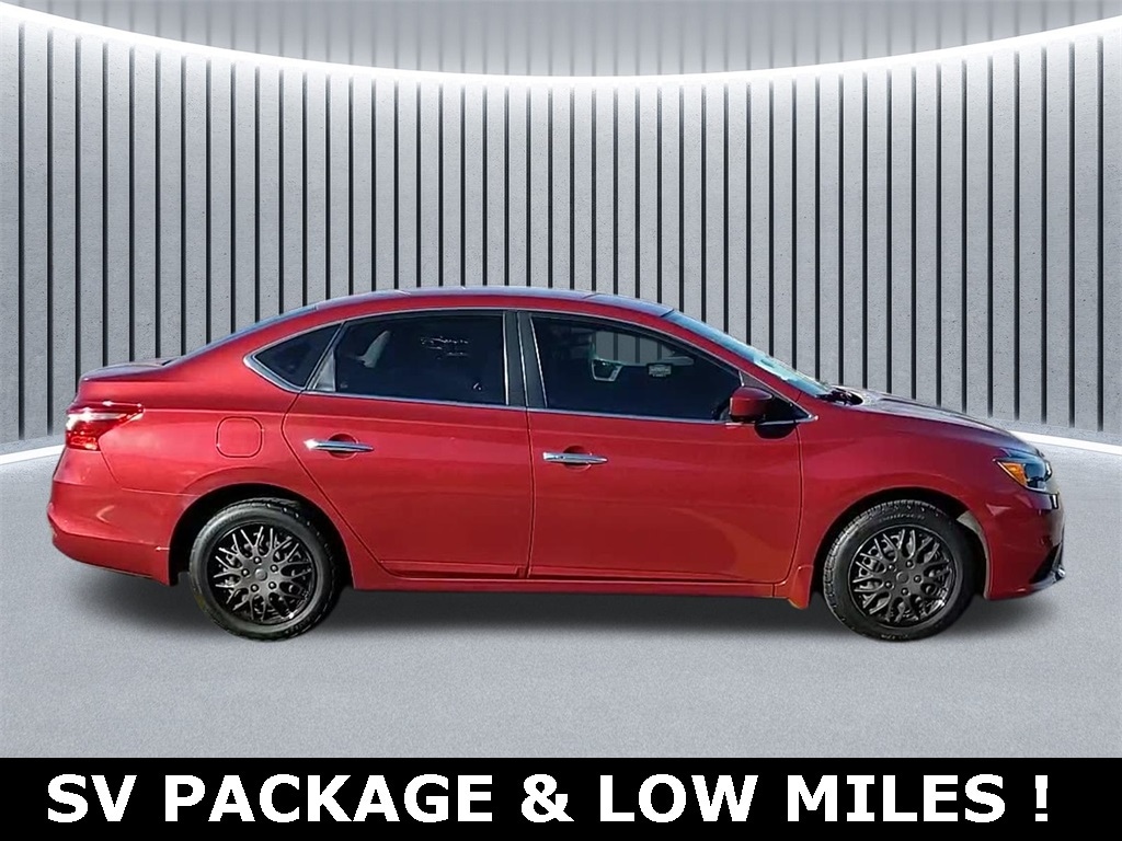 Clean CARFAX. Odometer is 9646 miles below market average! ** Bluetooth, Hands Free, ** Brake Assist, ** Camera Backup, ** Chrome Wheels / Premium Wheels / Custome Whwels, ** Cruise Control, ** Premium Sound System / Premium Audio, ** Stability Control, ** Steering Wheel Controls, ** USB Port, ** Clean Carfax Accident Free History, Key Specifications & Features Engine: 1.8-litre inline-4, producing ~124 hp and ~125 lb-ft of torque. auto123.com +2 Kbb.com +2 Transmission: Continuously Variable Transmission (CVT) with automatic (for the automatic version) and front-wheel drive. Edmunds +1 Fuel economy (approx): 29 mpg city / 37 mpg highway for the automatic version. Edmunds +2 Kbb.com +2 Cargo space: ~15.1 cu ft trunk. Kbb.com +1 Seating capacity: 5 passengers. Edmunds +1 Key features of SV trim: Upgraded cloth seats, leather-wrapped steering wheel, keyless entry/ignition, 6-speaker audio, Bluetooth, rear-view camera, âNissanConnectâ features. Sid Dillon +1, Sentra SV Sedan, 4D Sedan, 1.8L 4-Cylinder DOHC 16V, CVT with Xtronic, FWD, Cayenne Red Pearl Metallic, Charcoal Cloth.