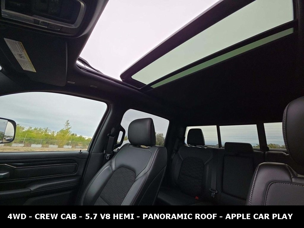 Odometer is 15680 miles below market average! ** Apple CarPlay/Android Auto, ** Blind Spot Monitor, ** Cross Traffic Alert, ** Alloy Wheels / Premium Wheels, ** Heated Seats, ** Bluetooth, Hands Free, ** Brake Assist, ** Camera Backup, ** Chrome Wheels / Premium Wheels / Custome Whwels, ** Cruise Control, ** Keyless Entry, ** Leather Seats, ** LED Headlights, ** Navigation System, ** Power Panoramic (Pano) Sunroof / Moonroof, ** Premium Sound System / Premium Audio, ** Stability Control, ** Steering Wheel Controls, ** Sunroof/Moonroof, ** USB Port, ** Power Drivers Seat, DEPLOYABLE RUNNING BOARD, Hereâs what a 2019 Ram 1500 Rebel with the 5.7L V8 plus Crew Cab / 4WD typically includes: Category Detail Engine & Performance 5.7L HEMI V8, ~395 hp, ~410 lb-ft torque. Automobile Catalog +2 Car and Driver +2 Transmission / Drivetrain 8âspeed automatic. 4WD (often partâtime or onâdemand depending on settings) with features like locking rear differential in many Rebel packages. Automobile Catalog +2 dancummins.com +2 Suspension & OffâRoad Gear Rebel trim includes offâroad tuned shocks (Bilstein), rear suspension geometry suited for offâroad, skid plates under engine, gas tank, steering, etc., tow hooks. 1âinch factory lift. Velocity Journal +2 newhollandcdjr.com +2 Size / Weight Length ~ 232.9 in, wheelbase ~144.5â144.6 in, width ~82.1 in. Curb weight ~5,200â5,400 lbs depending on options. GVWR ~7,100 lbs in many configurations. CarBuzz +2 Automobile Catalog +2 Fuel Economy For the 5.7L V8 / 4WD: about 15 mpg city / 21 mpg highway. Combined usually ~17 mpg. Kbb.com +2 J.D. Power +2 Towing & Payload Max towing depends on axle ratio, equipment, etc., but many are rated up to ~11,240 lbs in optimal configurations. Kbb.com +2 Ken Garff Auto Group +2 Cab / Bed Options The Crew Cab short bed (â5â²7â²â² / 5.5 ft) is a common configuration. Rebel trim often comes with that. Le Guide de l'auto +2 CarBuzz +2 Interior & Amenities Rebel includes more rugged interior touches, offâroad details, often optional tech like premium audio, heated seats/steering wheel, etc. Panoramic sunroof / moonroof is referred to in some spec sheets and may be an optional feature., Panoramic Roof / Sunroof Option The Rebel does offer sunâ/moonâroof options, and âpanoramic roofâ is mentioned as available in spec sheets or dealer listings. U.S. News Cars +2 dancummins.com +2 If it has a full dualâpane panoramic roof, thatâs a premium option. It adds weight, complexity (seal maintenance, electrical, glass integrity), potential for leaks, and can slightly raise the center of gravity. Good to check if well maintained. danc, 1500 Rebel 4WD CREW CAB 5.7 V8 HEMI, 4D Crew Cab, HEMI 5.7L V8 Multi Displacement VVT, 8-Speed Automatic, 4WD, Granite, Black Cloth, 115V Auxiliary Rear Power Outlet, 2 USB Full Function/Charge Only Media Hub, 4 Adjustable Cargo Tie-Down Hooks, 8.4" Touchscreen Display, Air Conditioning ATC w/Dual Zone Control, Apple CarPlay, Auto-Dimming Exterior Driver Mirror, Auto-Dimming Rear-View Mirror, Bed Utility Group, Body Color Door Handles, Exterior Mirrors Courtesy Lamps, Exterior Mirrors w/Supplemental Signals, Foam Bottle Insert (Door Trim Panel), Google Android Auto, GPS Navigation, Heated Front Seats, Heated Steering Wheel, Integrated Center Stack Radio, Level 2 Equipment Group, Navigation System, ParkSense Front/Rear Park Assist w/Stop, Pick-Up Box Lighting, Power Adjustable Pedals, Power Black Trailer Tow Mirrors, Power Heated Fold Away Mirrors, Power-Folding Mirrors, Quick Order Package 25W Rebel, Radio: Uconnect 4 w/8.4" Display, Rain Sensitive Windshield Wipers, Rear Dome w/On/Off Switch Lamp, Rear Underseat Compartment Storage, Rear Window Defroster, Rebel Level 1 Equipment Group, Remote Proximity Keyless Entry, Remote Start System, Security Alarm, Single Disc Remote CD Player, Sun Visors w/Illuminated Vanity Mirrors, Trailer Brake Control, Trailer Tow Group, Trailer Tow Mirrors, Universal Garage Door Opener.