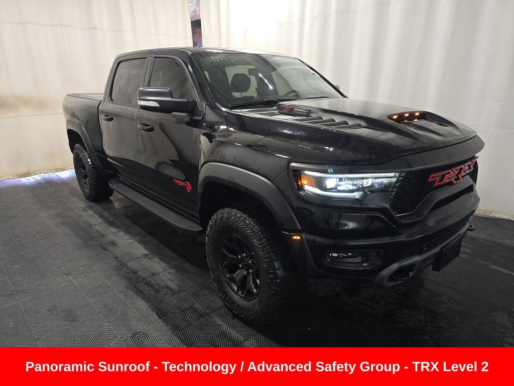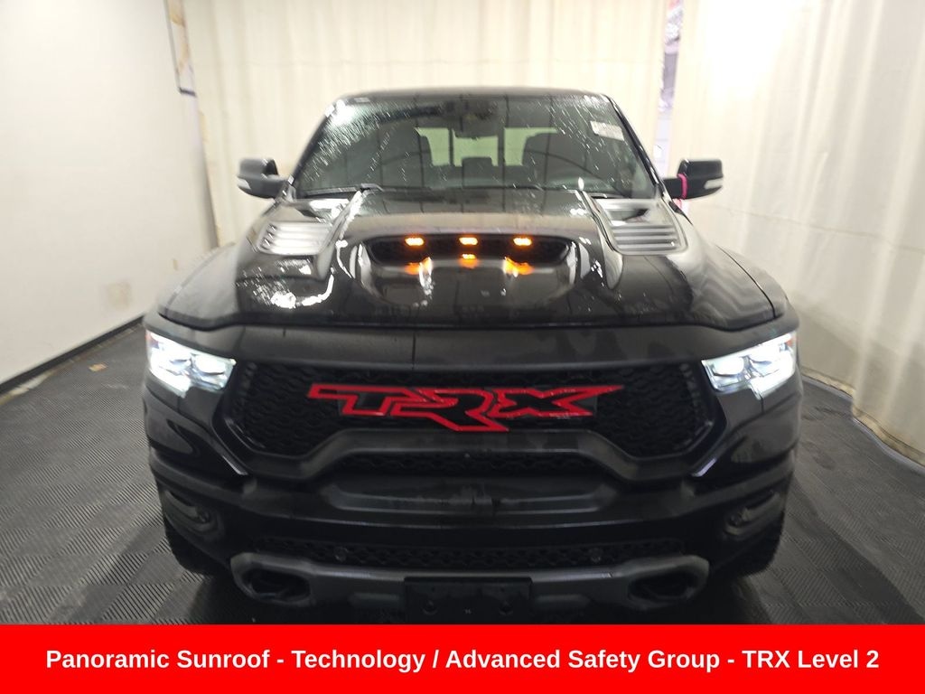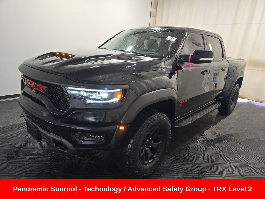 ** Apple CarPlay/Android Auto, ** Adaptive Cruise Control, ** Blind Spot Monitor, ** Cross Traffic Alert, ** Alloy Wheels / Premium Wheels, ** Heated Seats, ** Cooled Seats, ** Bluetooth, Hands Free, ** Brake Assist, ** Camera Backup, ** Chrome Wheels / Premium Wheels / Custome Whwels, ** Cruise Control, ** Head-Up Display, ** Heated Steering Wheel, ** Keyless Entry, ** Lane Departure Warning, ** Leather Seats, ** LED Headlights, ** Navigation System, ** Power Panoramic (Pano) Sunroof / Moonroof, ** Premium Sound System / Premium Audio, ** Stability Control, ** Steering Wheel Controls, ** Sunroof/Moonroof, ** Tow Hitch / Trailer Hitch, ** USB Port, ** Power Drivers Seat, ** Power Passenger Seat, ** Heated Rear Seats, 4WD, 4X4, 6.2L Supercharged HEMI V8 SRT, Engine & Performance Engine: 6.2L supercharged HEMI V8 Power: 702 hp / 650 lb-ft torque Transmission: 8-speed automatic Drivetrain: Full-time 4WD 0â"60 mph: ~3.7â"4.5 seconds (insane for a truck) ð' This is: More powerful than most sports cars One of the fastest production trucks ever made, TRX Level 2 Equipment Group, TRX Carbon Fiber Package, Rear ventilated seats, Leather bucket seats, Triâ"fold tonneau cover, TRX Red interior accents, Power dualâ"pane panoramic sunroof, TRX exterior graphics, Mopar offâ"road style running boards, harman/kardon 19â"speaker high performance audi, Key upgrades: Heated & ventilated seats Blind-spot monitoring + rear cross-traffic alert Remote start + proximity key Surround-view camera system Wireless charging Memory seats, mirrors, pedals Upgraded driver assist features ð' Translation: Level 1 = nice Level 2 = fully loaded luxury TRX ð Dual Pane Panoramic Roof Large full-length glass roof Power-operated Adds more light + premium feel Was about $1,495 option ð' Rare combo: Hardcore off-road truck With a luxury panoramic roof, 1500 TRX Panoramic Roof, 4D Crew Cab, 6.2L Supercharged HEMI V8 SRT, 8-Speed Automatic, 4WD, Diamond Black Crystal Pearlcoat, Black w/Premium Leather Trimmed Bucket Seats, Adaptive Cruise Control w/Stop & Go, Advanced Safety Group, Bed Utility Group, Blind Spot & Cross Path Detection, Body Color Door Handles, Driver Seat Memory, Driver/Passenger Wrapped Assist Handles, Exterior Mirrors w/Memory, Front Door Accent Lighting, Full Length Premium Upgraded Floor Console, Heads-Up Display, Heated Front Seats, Heated Second Row Seats, Heated Steering Wheel, IP LED Ambient Light Pipe, Lane Keep Assist, Leather Trimmed Bucket Seats, Leather/Suede Flat-Bottom Steering Wheel, LED CHMSL Lamp, Luxury Front Door Trim Panel, MOPAR 4 Adjustable Cargo Tie-Down Hooks, MOPAR Deployable Bed Step, MOPAR Spray In Bedliner, Navigation System, ParkSense Front/Rear Park Assist w/Stop, Pedestrian Emergency Braking, Pick-Up Box Lighting, Power 8-Way Driver & Passenger Seats, Power Adjustable Pedals w/Memory, Premium Wrapped IP Bezel, Quick Order Package 29Y, Radio/Driver Seat/Mirrors/Pedals Memory, Rain Sensitive Windshield Wipers, Rear 60/40 Folding Split Recline Seat, Rear Door Accent Lighting, Rear Underseat Compartment Storage, Rear Window Defroster, Rearview Autodim Digital Display Mirror, Remote Proximity Keyless Entry, Remote Start System, Remote Tailgate Release, Sun Visors w/Illuminated Vanity Mirrors, Surround View Camera System, Technology Group, Trailer Brake Control, TRX Level 2 Equipment Group, Universal Garage Door Opener, Ventilated Front Seats, Ventilated Rear Seats, Wireless Charging Pad.