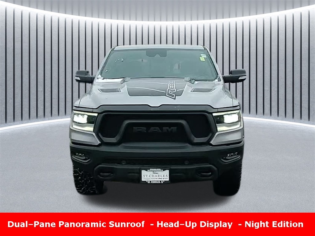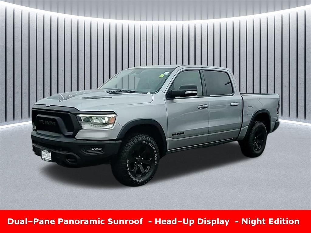 Clean CARFAX. Odometer is 19226 miles below market average! ** Apple CarPlay/Android Auto, ** Adaptive Cruise Control, ** Blind Spot Monitor, ** Cross Traffic Alert, ** Alloy Wheels / Premium Wheels, ** Heated Seats, ** Bluetooth, Hands Free, ** Brake Assist, ** Camera Backup, ** Chrome Wheels / Premium Wheels / Custome Whwels, ** Cruise Control, ** Head-Up Display, ** Heated Steering Wheel, ** Keyless Entry, ** Lane Departure Warning, ** Leather Seats, ** LED Headlights, ** Navigation System, ** Power Panoramic (Pano) Sunroof / Moonroof, ** Premium Sound System / Premium Audio, ** Stability Control, ** Sunroof/Moonroof, ** Tow Hitch / Trailer Hitch, ** USB Port, ** Clean Carfax Accident Free History, ** Power Drivers Seat, ** Power Passenger Seat, 4wd, 4x4, HEMI 5.7L V8 Multi Displacement VVT, Dualâ"Pane Panoramic Sunroof, Mopar sprayâ"in bedliner, Feature / Package What It Adds / Changes Notes & Possible Options Rebel trim More offâroad capability, a rugged look, performance suspension, upgraded tires, etc. Standard with Rebel are things like the eLocker rear axle, 18âinch allâterrain tires, etc. digimag.rrd.com +1 Night Edition (Appearance) Blackedâout styling: gloss black wheels, black grille & badges, black front bumper & skid plate, dark accents. Stellantis Fleet +2 digimag.rrd.com +2 Tech Group Adds more convenience / electronics: larger display, perhaps digital rearview mirror, driver assist / safety features, maybe upgraded infotainment. Cars.com +2 TrueCar +2 Panoramic Roof / DualâPane Sunroof Bigger sunroof, more light, possibly dual panels. Optional extra cost, For a 2022 Rebel with Night Edition + Tech + Panoramic Roof, typically youâd expect: Engine / Performance: Most likely the 5.7L HEMI V8 (395 hp), with 4WD. Rebel has lifted/stronger offâroad bits. TrueCar +1 Exterior: ⢠Gloss black 18âinch wheels (Night Edition) digimag.rrd.com +2 digimag.rrd.com +2 ⢠Black grille / badges / black bumper & skid plate Stellantis Fleet +1 ⢠Panoramic sunroof / dualâpane sunroof optional, if you have that, it will add light & overhead glass; shade(s) included. Edmunds +2 TrueCar +2 Interior & Tech: ⢠Uconnect with large screen (12âinch likely, especially with Tech Group) digimag.rrd.com +2 TrueCar +2 ⢠Advanced safety features: maybe forward collision warning, blind spot, trailer sway control, etc. Stellantis Fleet +2 TrueCar +2 ⢠Comfort extras, maybe power seats, heated steering wheel, sound system upgrade if included. Cost / Pricing: The panoramic roof adds a premium, 1500 Rebel Panoramic Roof, 4D Crew Cab, HEMI 5.7L V8 Multi Displacement VVT, 8-Speed Automatic, 4WD, Billet Silver Metallic, Red/Black, 115V Auxiliary Rear Power Outlet, 2-Door Passive Entry, Front Door Locks, 2nd Row In Floor Storage Bins, 4G LTE Wi-Fi Hot Spot, 8.4" Touchscreen Display, Air Conditioning ATC w/Dual Zone Control, Apple CarPlay, Auto-Dimming Exterior Driver Mirror, Black Exterior Mirrors, Black Front Bumper w/Black Plate, Black Premium Power Mirrors, Bluetooth Handsfree Phone & Audio, Body Color Door Handles, Comfort/Convenience Group, Connectivity - US/Canada, Convex Wide-Angle Mirror Insert, Digital Rearview Mirror, Driver Seat Memory, Exterior Mirrors Courtesy Lamps, Exterior Mirrors w/Heating Element, Exterior Mirrors w/Memory, Exterior Mirrors w/Supplemental Signals, Foam Bottle Insert (Door Trim Panel), For Details, Visit DriveUconnect.com, Global Telematics Box Module (TBM), Google Android Auto, GPS Antenna Input, GPS Navigation, Grille Surround 2 Black Texture 3 Black, harman/kardon 19 Speaker Premium Sound, Heads-Up Display, Heated Front Seats, Heated Second Row Seats, Heated Steering Wheel, Integrated Center Stack Radio, LED CHMSL Lamp, Level 2 Equipment Group, Lux Leather Trimmed Bucket Seats, Media Hub w/2 Charge Only USBs, Navigation System, Night Edition, ParkSense Front/Rear Park Assist w/Stop, Power 2-Way Passenger Lumbar Adjust, Power 8-Way Driver & Passenger Seats, Power Adjustable Pedals, Powe