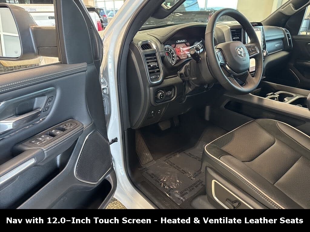 CARFAX One-Owner. Clean CARFAX. ** Clean Carfax 1-Owner Accident Free History, ** Apple CarPlay/Android Auto, ** Adaptive Cruise Control, ** Blind Spot Monitor, ** Cross Traffic Alert, ** Alloy Wheels / Premium Wheels, ** Heated Seats, ** Cooled Seats, ** Bluetooth, Hands Free, ** Brake Assist, ** Camera Backup, ** Chrome Wheels / Premium Wheels / Custome Whwels, ** Cruise Control, ** Keyless Entry, ** Leather Seats, ** Navigation System, ** Premium Sound System / Premium Audio, ** Stability Control, ** Steering Wheel Controls, ** USB Port, ** Clean Carfax Accident Free History, ** One Owner, ** Power Drivers Seat, ** Power Passenger Seat, ** Heated Rear Seats, 4wd, 4x4, 3.0L I6 Hurricane SO Twin Turbo, 20â"Inch x 9.0â"Inch Premium Painted/Polished Wheel, Ventilated Front Seats, Uconnect® 5 Nav with 12.0â"Inch Touch Screen Display, Engine (3.0 L Hurricane I6) Horsepower: ~420 hp @ 5,200 rpm Torque: ~469 lb-ft @ 3,500 rpm Configuration: Twin-turbo inline-6 Transmission: 8-speed automatic Drivetrain: Four-wheel drive (4Ã4) Kbb.com This engine blends strong performance with better efficiency and emissions compared with a traditional larger V-8 â" giving plenty of torque for towing and highway driving. Stellantis Fleet EPA Fuel Economy Estimates (approx): 17 mpg city / 24 mpg highway (Crew Cab 4Ã4) J.D. P, Interior / Comfort Leather-trimmed seats and upgraded upholstery (varies by option) Large infotainment screen with Apple CarPlay & Android Auto More advanced driver info display and available premium audio Safety & Driver Tech Blind-spot monitoring and rear cross-path detection Available park assist features Trailer sway control Exterior / Utility Chrome or body-color trim (depending on package) Class IV hitch receiver Trailer sway and tow-assist tech, 1500 Laramie 4WD Crew Cab, 4D Crew Cab, 3.0L I6, 8-Speed Automatic, 4WD, Bright White Clearcoat, Black w/Leather Trimmed Bucket Seats, GPS Navigation, Navigation System, Quick Order Package 21H Laramie.