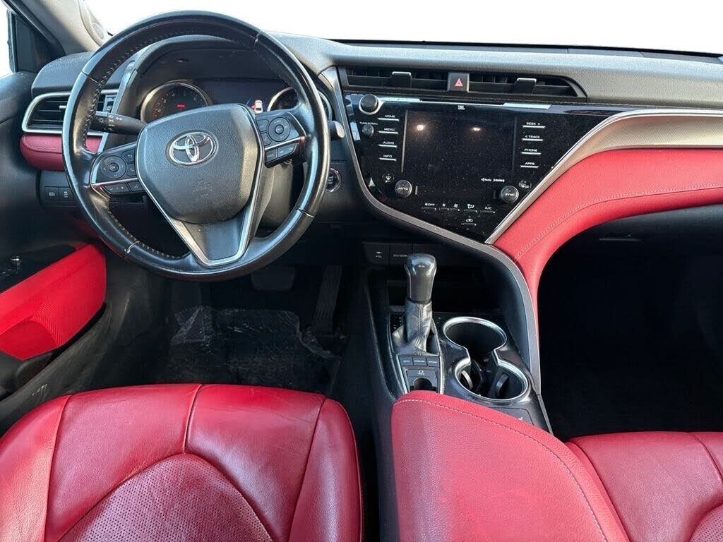 Clean CARFAX. ** Adaptive Cruise Control, ** Blind Spot Monitor, ** Cross Traffic Alert, ** Alloy Wheels / Premium Wheels, ** Heated Seats, ** Bluetooth, Hands Free, ** Brake Assist, ** Camera Backup, ** Chrome Wheels / Premium Wheels / Custome Whwels, ** Cruise Control, ** Keyless Entry, ** Leather Seats, ** LED Headlights, ** Navigation System, ** Premium Sound System / Premium Audio, ** Stability Control, ** Steering Wheel Controls, ** Sunroof/Moonroof, ** USB Port, ** Clean Carfax Accident Free History, ** Power Drivers Seat, Key Features of the 2018 Camry XSE (Panoramic Roof & FWD) ð" Drivetrain & Performance Front-Wheel Drive (FWD) Transmission: 8-speed automatic Available engine options: 2.5L 4-cylinder (â206 hp, 186 lb-ft) 3.5L V6 (â301 hp, 267 lb-ft) â" most XSE panoramic roof examples have the V6 Digital Trends +1 âï¸ Panoramic Glass Roof Large panoramic glass roof with a front power tilt/slide moonroof gives the cabin an open, airy feel. Toyota Certified âï¸ Exterior & Style Sporty design with 19â²â² black machined-finish alloy wheels (typical for XSE). Toyota Certified Panoramic roof often paired with dual exhaust and sport-styled exterior. Carfax ðï¸ Interior & Comfort Leather-trimmed seats (heated front seats often standard or available). Carvana Multi-mode drive selector (ECO / Normal / Sport)., Technology & Safety Toyota Safety Sense-P suite (Pre-collision, Lane Departure Alert, Radar Cruise). wilsonvilletoyota.com Available features like Blind Spot Monitor, Head-Up Display depending on package. Toyota Certified ð" Fuel Economy (Typical) 4-cyl XSE (2.5L): ~28 mpg city / 39 mpg highway / 32 combined, Camry XSE Panoramic Roof, 4D Sedan, 2.5L I4 DOHC 16V, 8-Speed Automatic, FWD, Super White, Cockpit Red w/Perforated Leather Seat Trim, Carpeted Floor Mats & Trunk Mat Package, First Aid Kit, Hide Away Cargo Net, Lower Rocker Applique, Navigation System, Preferred Accessory Package (Z4), Preferred Accessory Package (Z6), Rear Bumper Applique (Black).